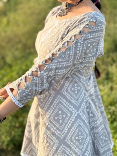 Square neck kurti with Flared Sleeves & has lace detailing over it. While the dreamiest fit of Farshi Salwar is making it the perfect set fir almost every occasion.