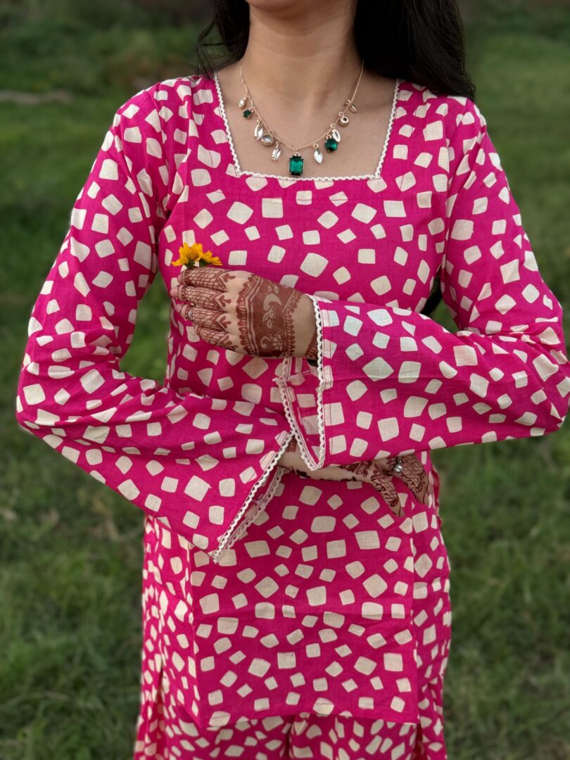 “Sifat”~ A perfect pink shade with beige Prints on it giving all the Girly vibes.