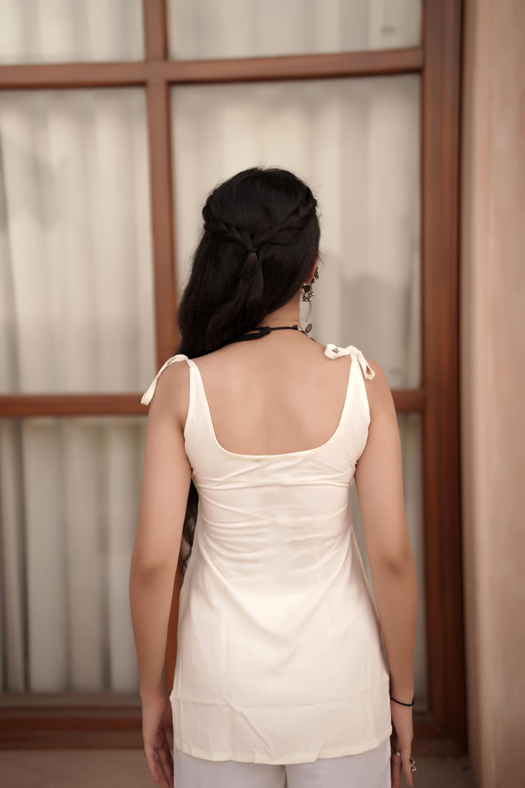 Shoulder tie-up knots with tassel ends that bring effortless charm & adjustability.