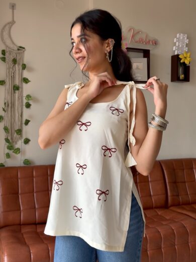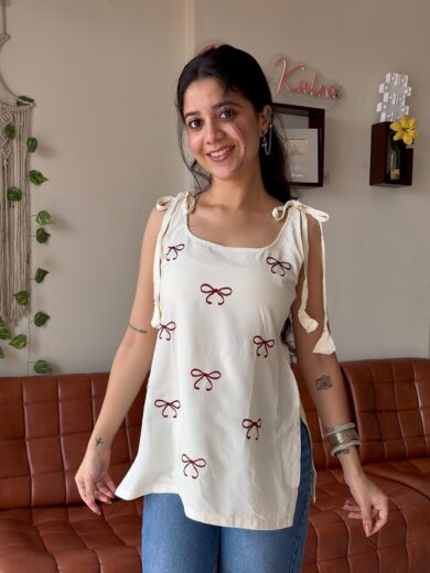 Chandani 2.0 Bow embroidered Rayon Kurti