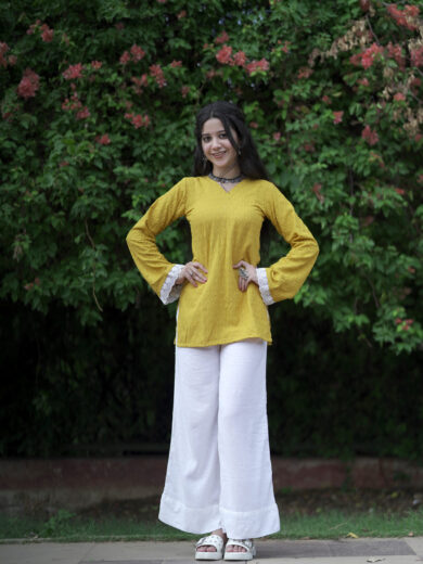 Phoolkari Frill Yellow Kurti Top