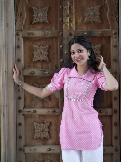 Hemlata Baby Pink Collar Puffed Sleeves Kurti