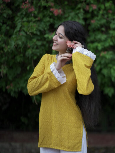 Jeet Mustard Yellow Chikankari Kurti