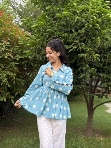 Heer Cutout Pearl Sleeves Polka Dot Kurti Top