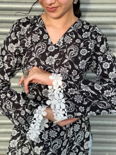 Madhavi Black Bell Sleeves Kurti